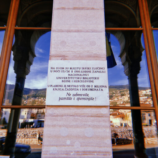 At the entrance to the town hall, there is a sign that Serbian attackers burned down the library. How did the exhibition overlook it? But is this definition correct? “Why not the Serbian army, as determined by the court?” Velma asks. “Why not word it according to the tribunal’s opinion? Many Serbs were also under siege, it is not their fault.”