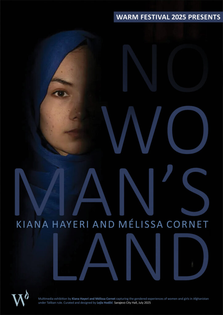 No Woman’s Land is a multimedia exhibition by Kiana Hayeri and Mélissa Cornet, presented at Sarajevo City Hall from June 30 to July 14, 2025, as part of the WARM Festival. After becoming laureates of the Carmignac Photojournalism Award in 2024, Cornet and Hayeri traveled across seven provinces over ten weeks, interviewing over 100 Afghan women and girls about how their lives have transformed under these harsh restrictions. Over the course of six months, they returned again and again to document the realities faced by women and girls under Taliban rule – realities that, according to Amnesty International, may amount to a crime against humanity of gender-based persecution.
