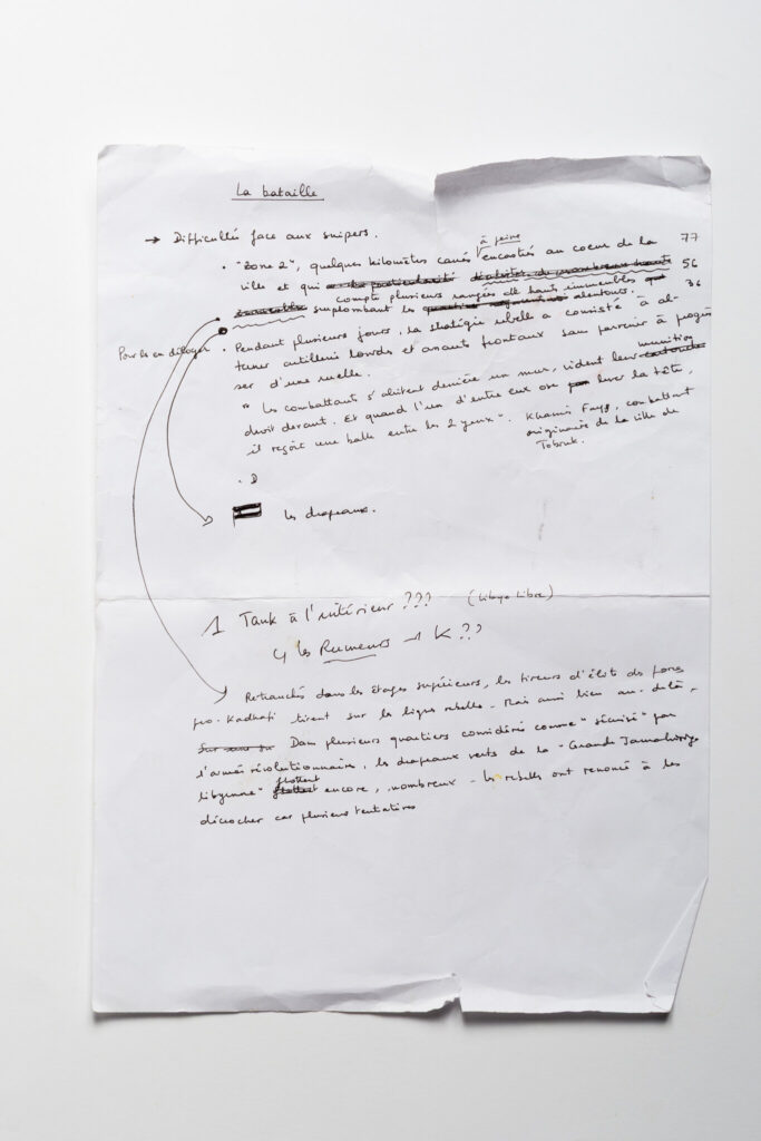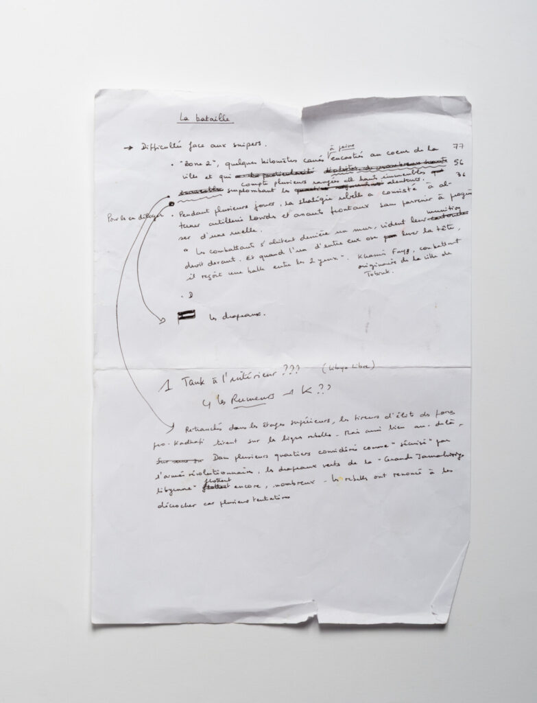These notes were taken after a meeting of Libyan rebel brigade leaders as they prepared to launch a coordinated assault on Sirte, the last pro-Gaddafi stronghold. A map was drawn up; until then, the rebels had been confined to the outskirts and knew of the city’s internal organization only through informants.