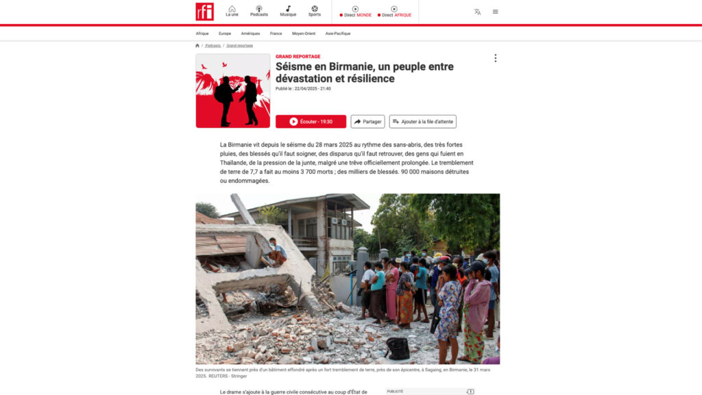 On March 28, 2025, Myanmar was struck by a devastating 7.7-magnitude earth- quake, claiming thousands of lives. The disaster unfolded amidst the ongoing conflict between the federal army and ethnic armed groups, which has plagued the country since 2021. Myanmar’s authorities imposed strict restrictions, pre- venting journalists from accessing the affected areas, leaving only a handful able to report from the ground.