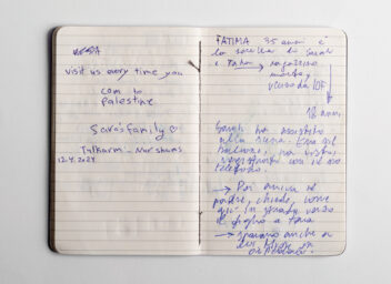 I was working on the story and had left my notebook by accident inside the apartment, Sarah’s family’s apartment. When I came back, Sarah had written a kind note in it.