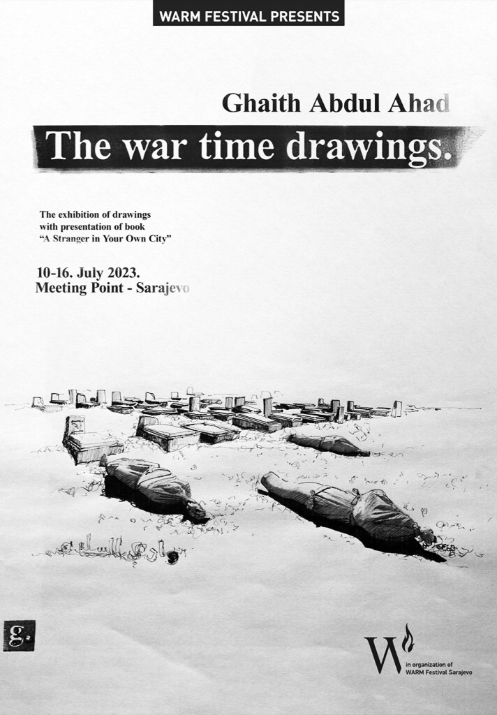 On July 12, 2023 at 18:00, WARM Festival hosted The War Zone Drawings, an exhibition of drawings by Iraqi journalist and writer Ghaith Abdul Ahad, at Smoje Galerija in Sarajevo.
