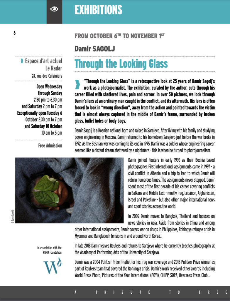 Through the Looking Glass was a cross-conflict photographic exhibition presented during WARM Festival 2019 in Sarajevo and later shown at the Bayeux Calvados-Normandy Award in France.